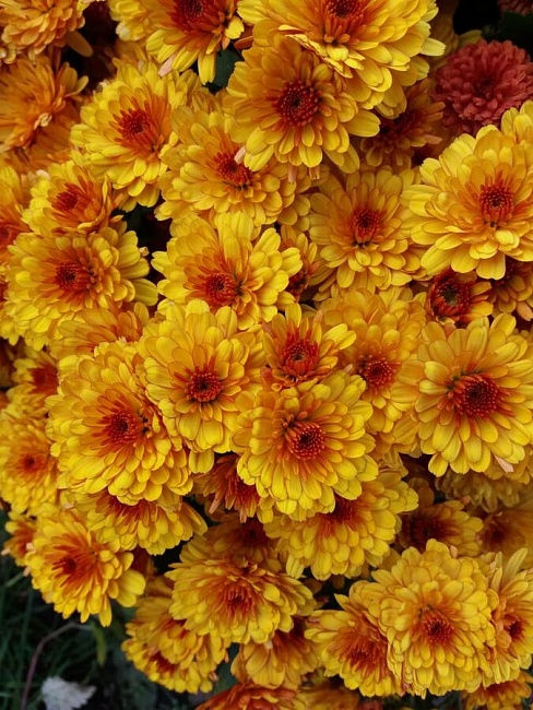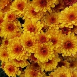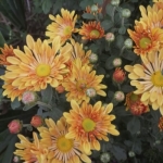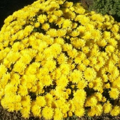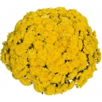 Куст шаровидной формы высотой 40-50 см. Цветок махровый желтого цвета с более темным центром. Диаметр цветка 5 см. В средней полосе России зацветает в середине сентября и сохраняет декоративность вплоть до первых заморозков.