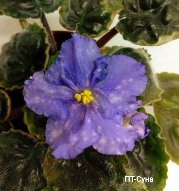 Очень крупные воздушные махровые бахромчатые синие цветы. Обильное цветение. Ровная розетка из тёмных зелёных листьев.(Обалденный сорт!. Цветы как помпоны. Крупные,тяжелые,цветоносы крепкие. )