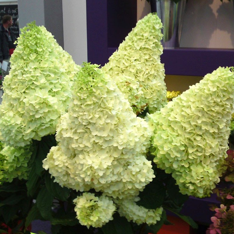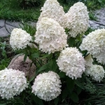 Соцветия у гортензии Лаймлайт классической конической формы, широкие в основании, диаметром до 20 см и довольно крупные – длиной 25 – 30 см. В начале роспуска они окрашены в зеленовато-бежевый оттенок. Затем белеют и приобретают легкий лимонный...