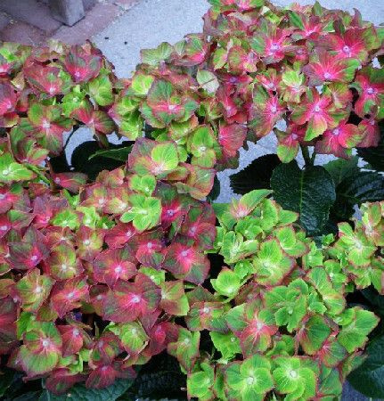 Причудливый и красочный сорт-хамелеон. Цветки многочисленные, 3–5 см, красно-малинового цвета с сине-фиолетовой серединкой и синим центром. На кончиках лепестков лаймовый оттенок. Чем кислее почва, тем ярче синий цвет. Соцветия полушаровидные,...