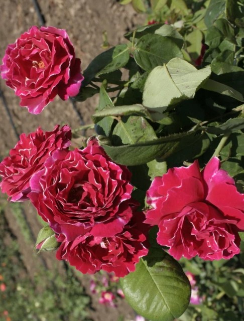 Названия не знаю,т.к досталась от старых хозяев дома. Роза неубиваемая,быстро разрастающаяся. Шипов на розе нет,что очень удобно и достаточно редко.