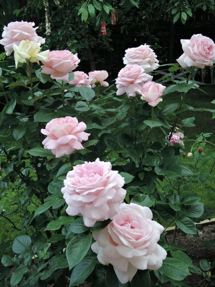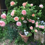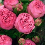 Цветки диаметром 10-12 см, розовые, вначале шаровидные, затем чашевидные с причудливо расположенными лепестками, как у старинных роз. Цветки образуются соцветиями, что делает куст практически усыпанный цветами. Одна ветка розы этого сорта заменяет...
