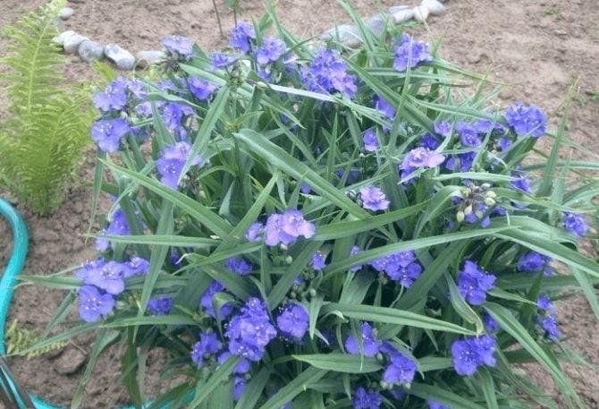 Многолетник, высотой 60 см. Листья до 20 см длинной ланцетные. Размножается корневищем, цветение синими цветками непрерывное с середины июня до морозов синими цветками.
