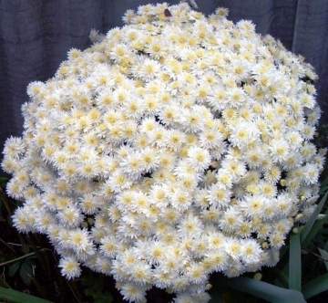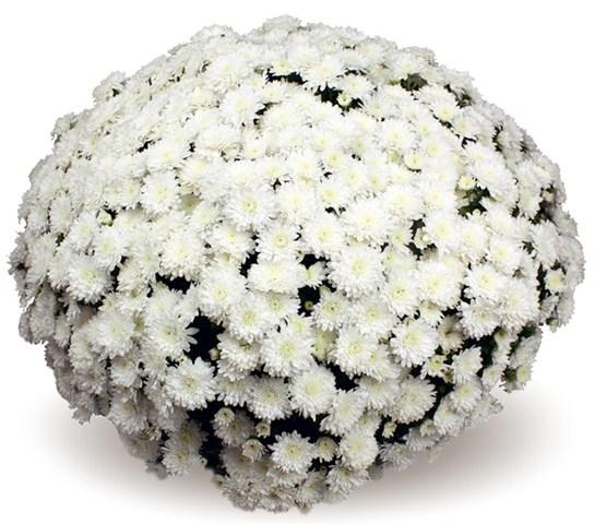 Белые цветки, образуя шар, напоминают платье невесты. В высоту куст достигает 50 см. Цветки диаметром 6 см. Цветение: сентябрь.