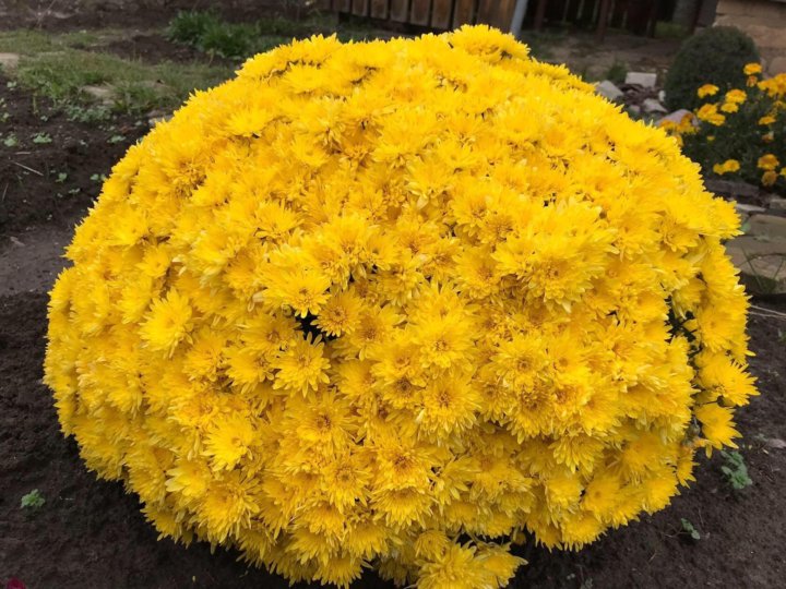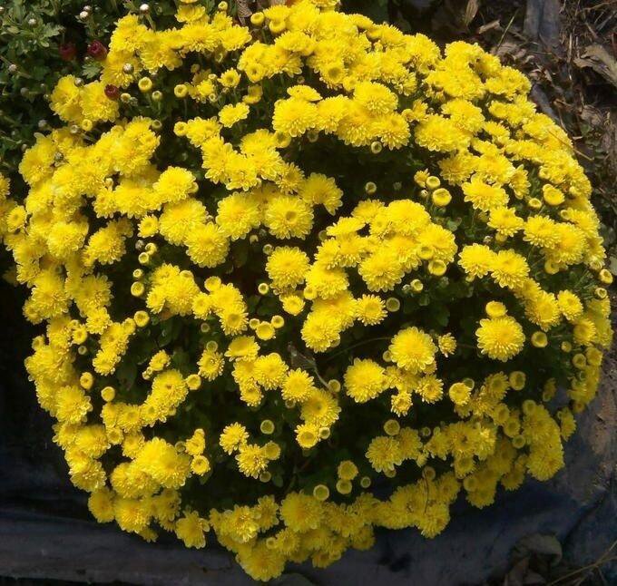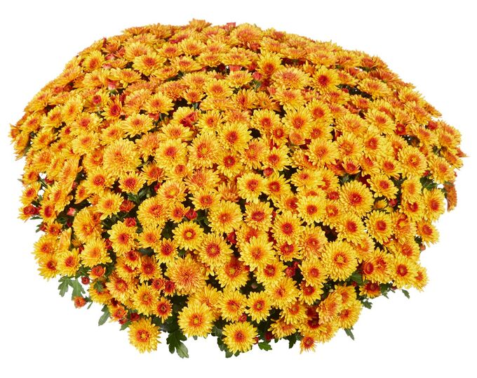 Шаровидная, обильноцветущая двухцветная хризантема. Цвет желтый с красной серединкой. Относится к сортам среднего срока цветения, подойдет для посадки в открытый грунт, вазоны, контейнеры.